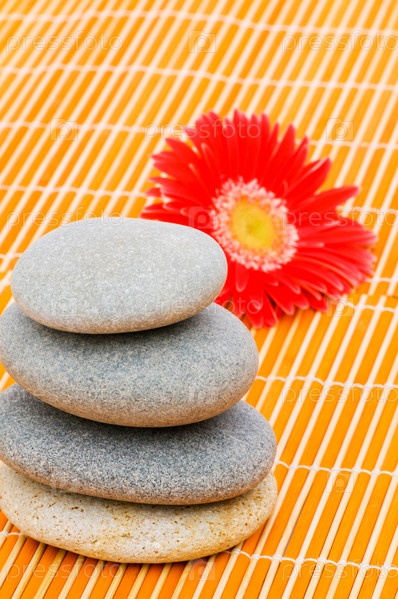 Красный цветок и камешки