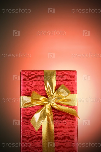 Подарок в красной упаковке на красном фоне