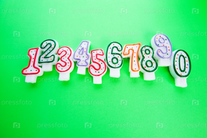 Свечи для торта ко дню рождения на зеленом фоне