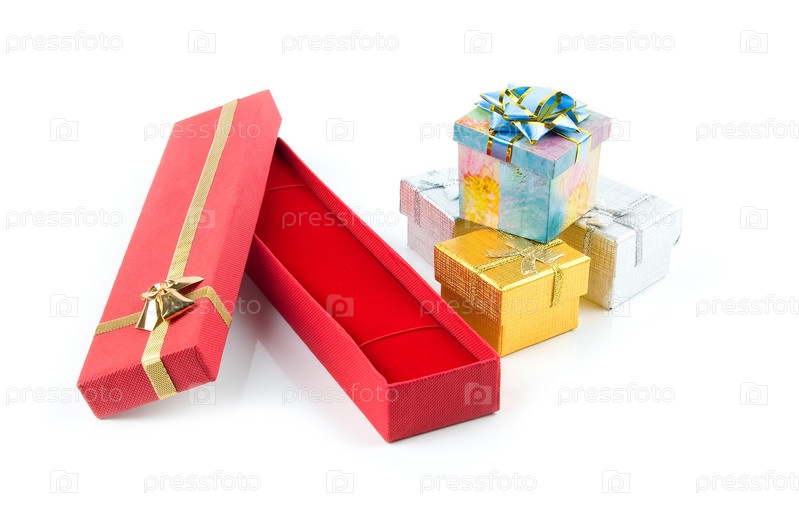 Набор подарочных коробок на белом фоне