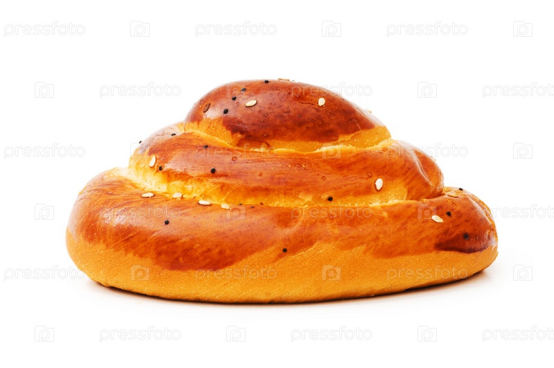 Булочка с маком и кунжутом на белом фоне