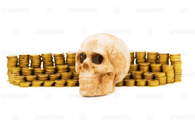 Череп на фоне монет