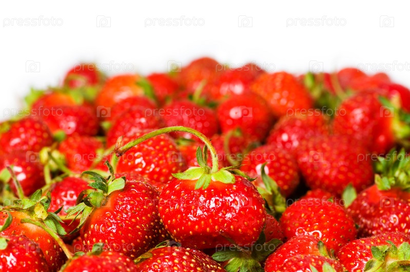 Спелая красная клубника крупным планом на белом фоне
