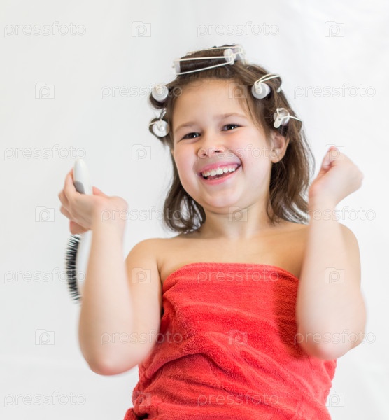 Счастливая девочка с бигуди на голове