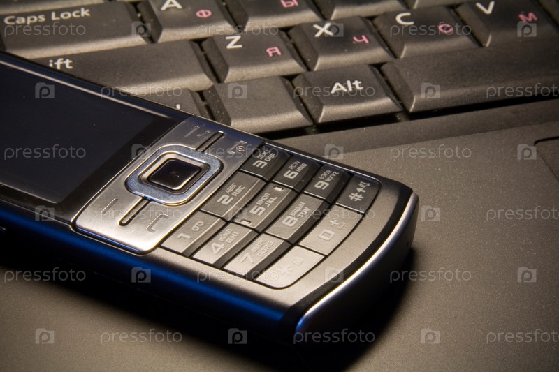 Мобильный телефон лежит на ноутбуке
