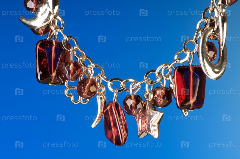 Красивая цепочка с бусинами на синем фоне