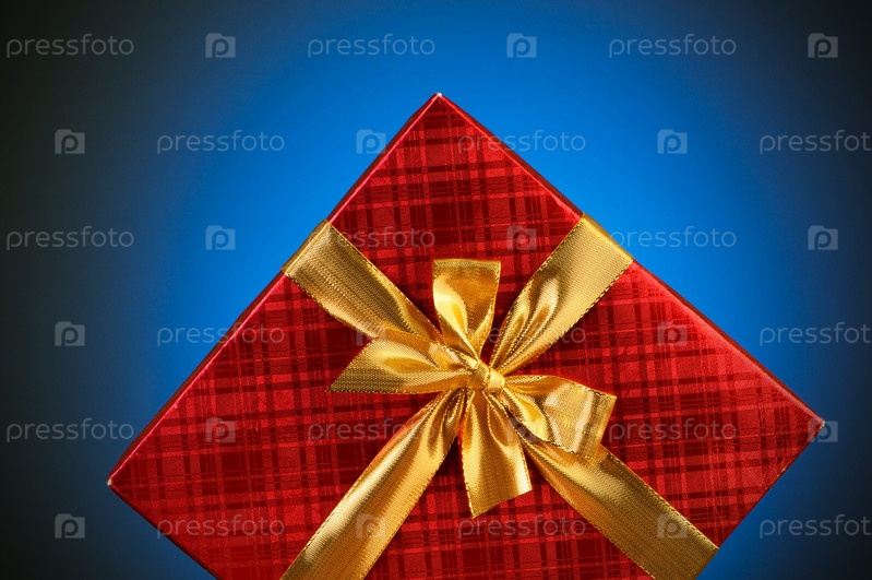 Красная коробка с подарком на синем фоне