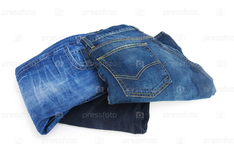 Голубые джинсы на белом фоне