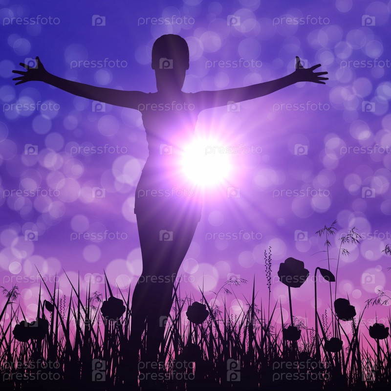 Силуэт девушки на лугу