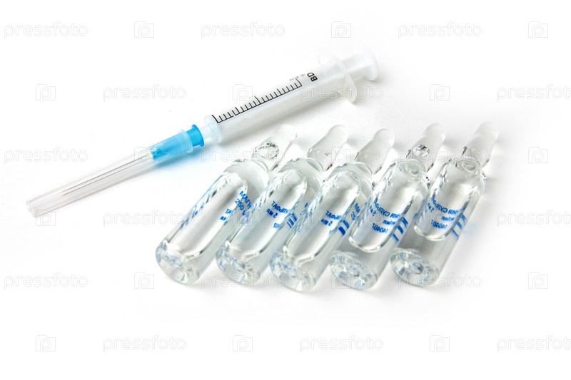 Ампулы с лекарством и шприц как инструмент врача