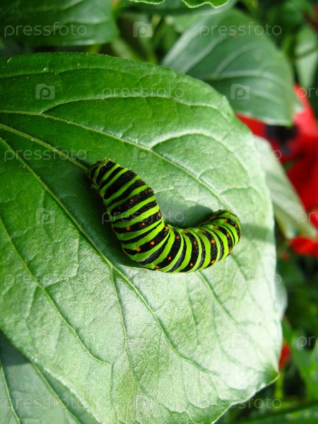 Гусеница бабочки махаон на листе