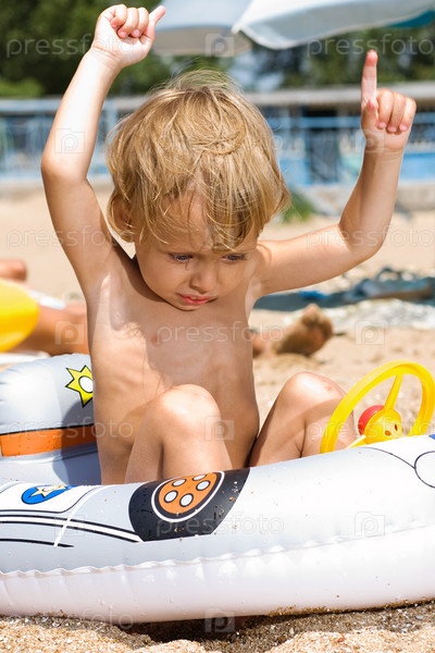 Мальчик играет на пляже
