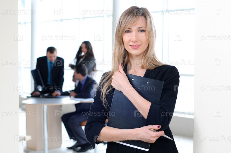 Красивая деловая женщина на фоне деловых людей