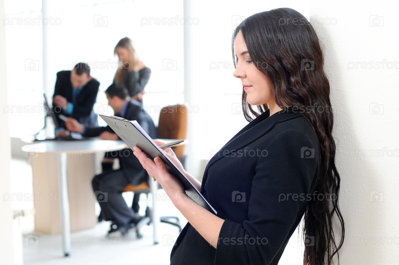 Красивая деловая женщина на фоне деловых людей