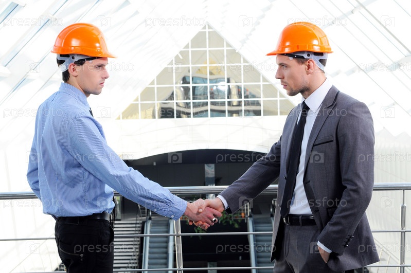 Двое мужчин в касках на строительной площадке