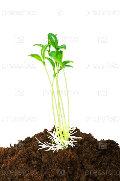 Концепция новой жизни - зеленая рассада вырастает из почвы