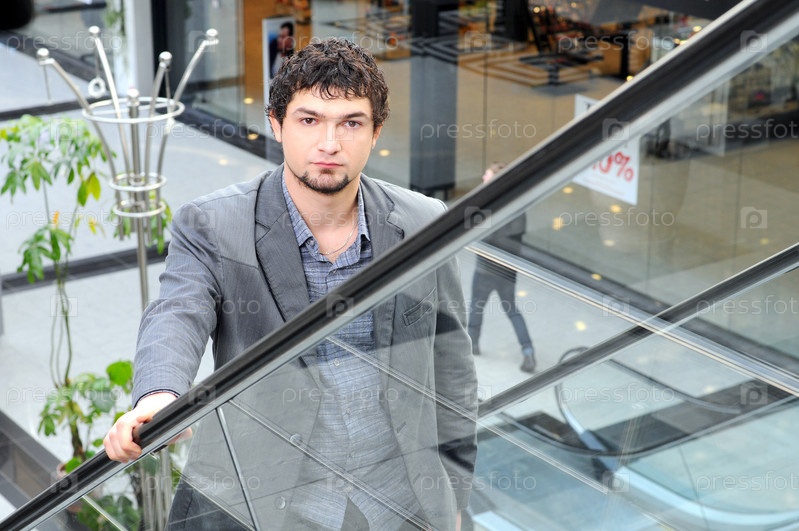 Портрет современного молодого человека на эскалаторе