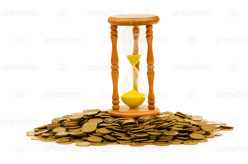 Время-деньги - песочные часы и монеты