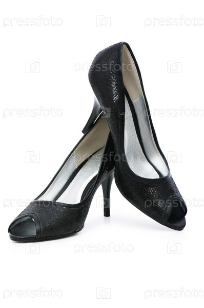 Черные женские туфли на белом фоне