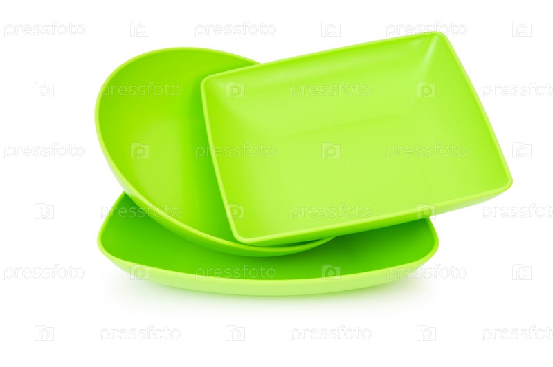 Три зеленые тарелки на белом фоне