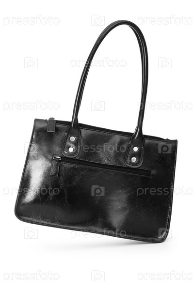 Черная кожаная женская сумка на белом фоне