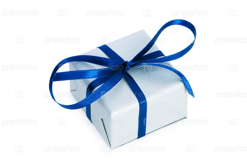 Коробка с подарком на белом фоне