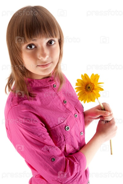 Портрет красивой девушки с желтой герберой