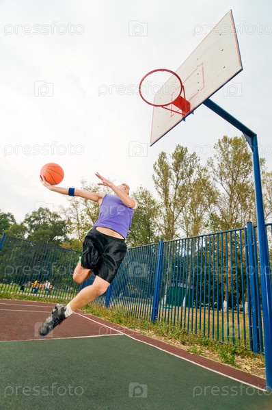 Игрок в стритбол в прыжке