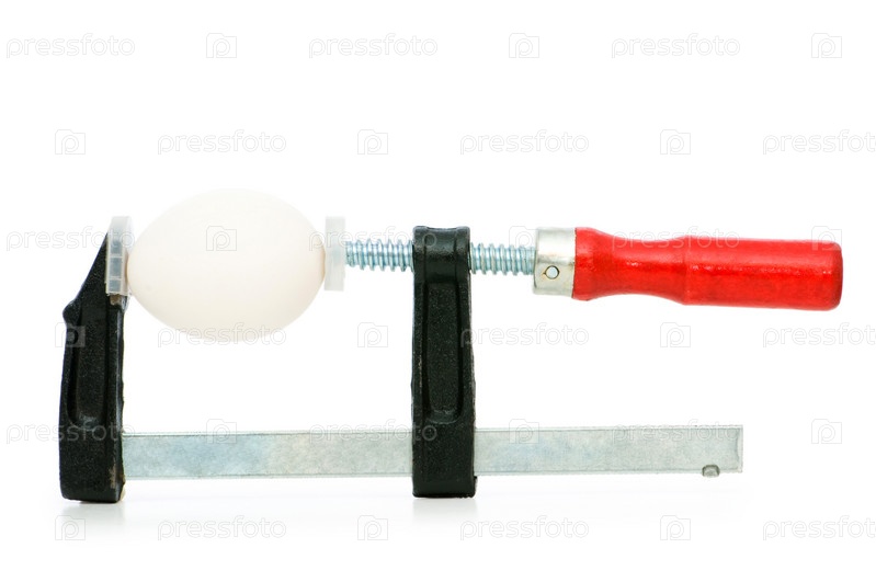 Яйцо в зажиме на белом фоне