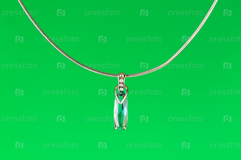 Подвеска на цепочке на зеленом фоне
