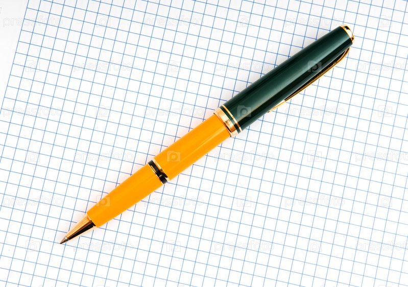 Желтая ручка на тетрадном листе крупным планом