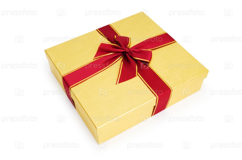 Коробка с подарком на белом фоне