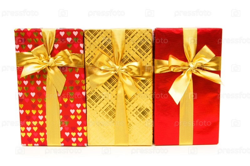 Подарочные коробки на белом фоне