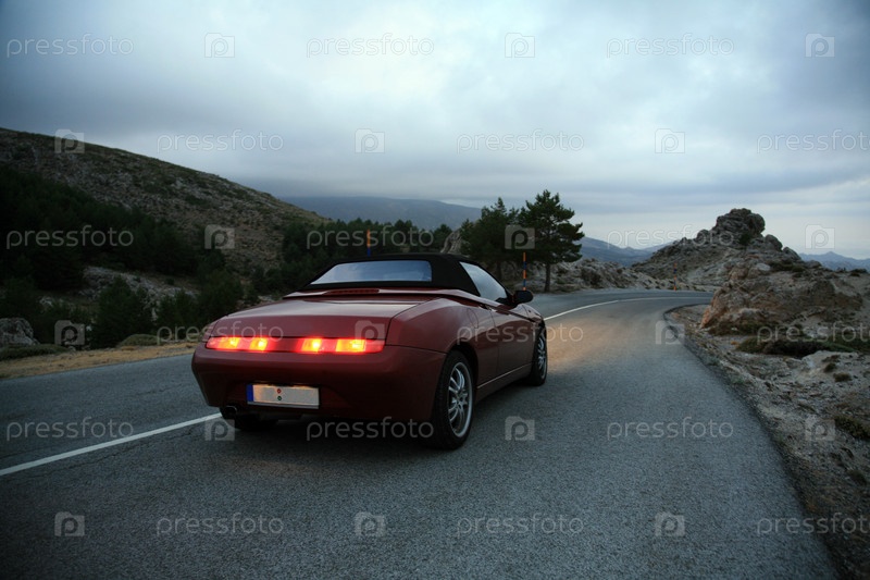 Красный кабриолет на дороге вечером в Сьерра-Невада