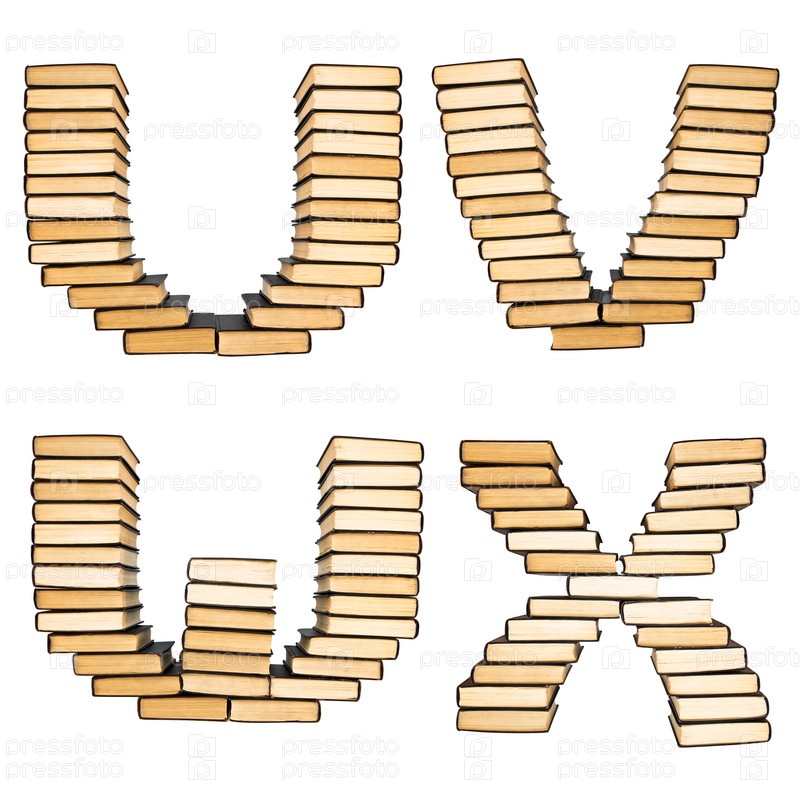 Буквы, выложенные из книг. Алфавит из книг, изолированный на белом фоне