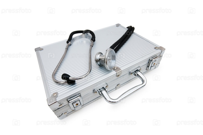 Стетоскоп и корпус изолированы на белом