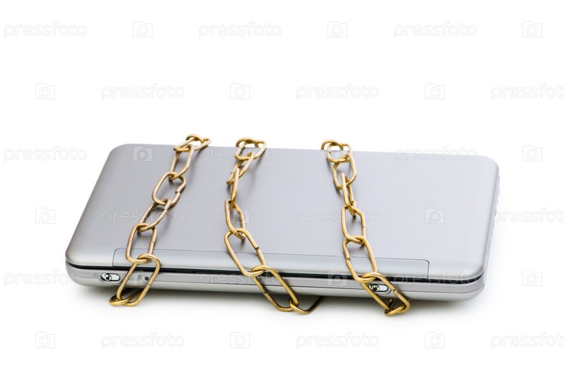 Концепция компьютерной безопасности с ноутбуком и цепью