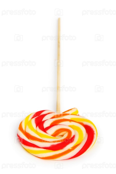 Круглый разноцветный леденец на белом фоне