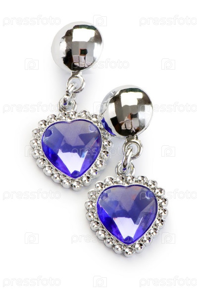 Серебряные серьги с синими камнями на белом фоне