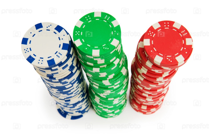 Стопки игральных фишек на белом фоне