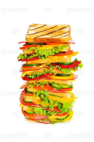 Гигантский бутерброд на белом фоне