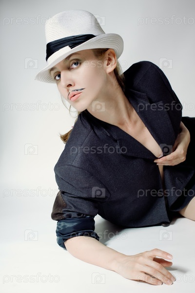 Женщина в шляпе с поддельными усами