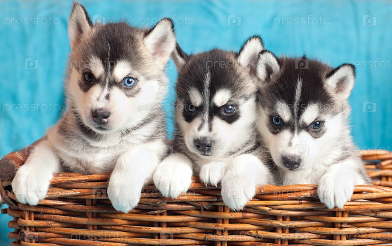 Три щенка хаски