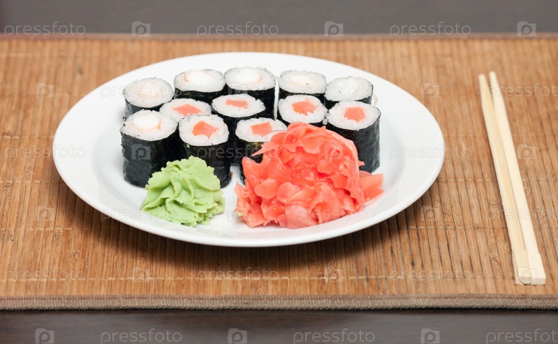 Роллы на тарелке