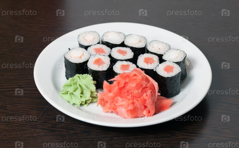 Роллы на тарелке
