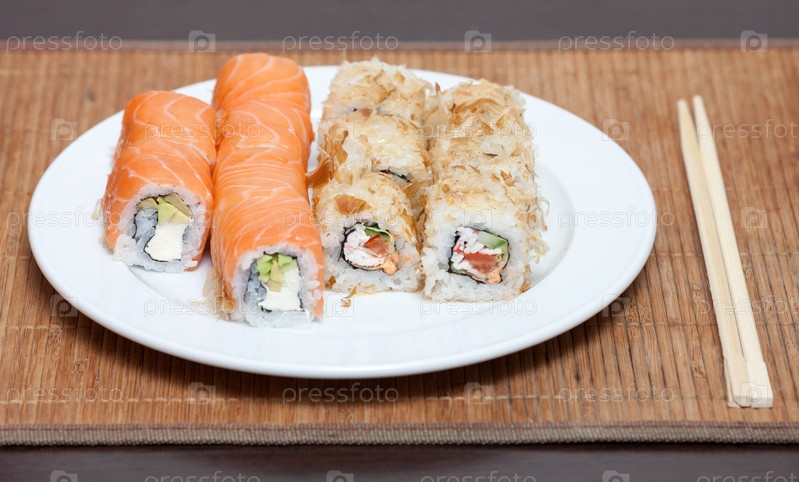 Роллы на тарелке