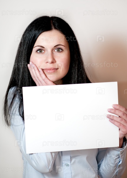 Молодая женщина, держащая пустую карточку