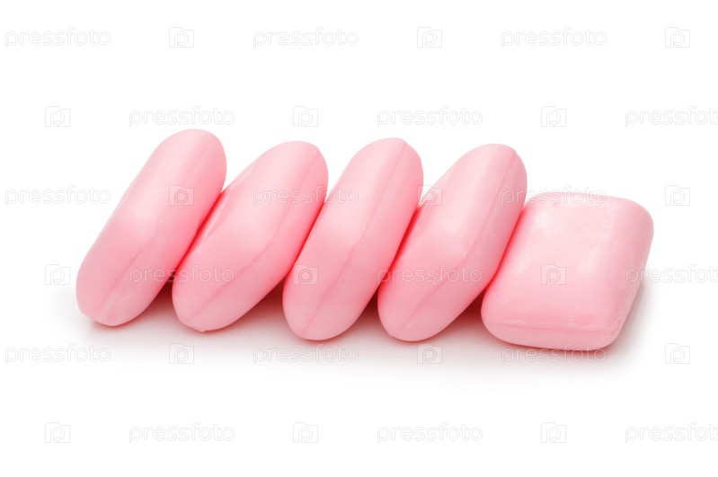 Пять розовых кусков мыла на белом фоне