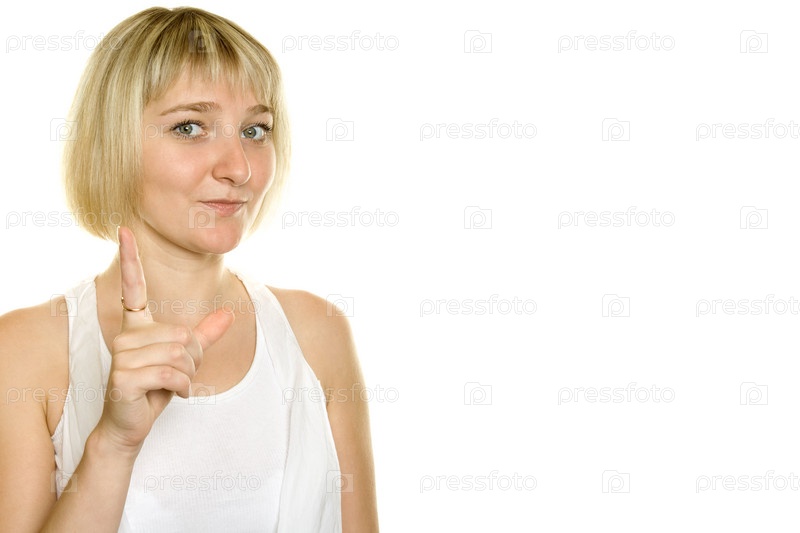 Симпатичная блондинка на белом фоне