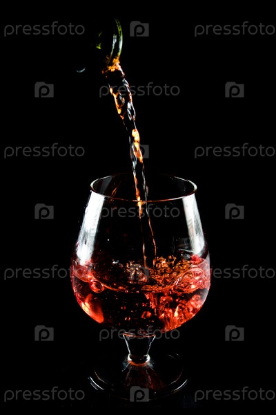 Бокал коньяка на черном фоне